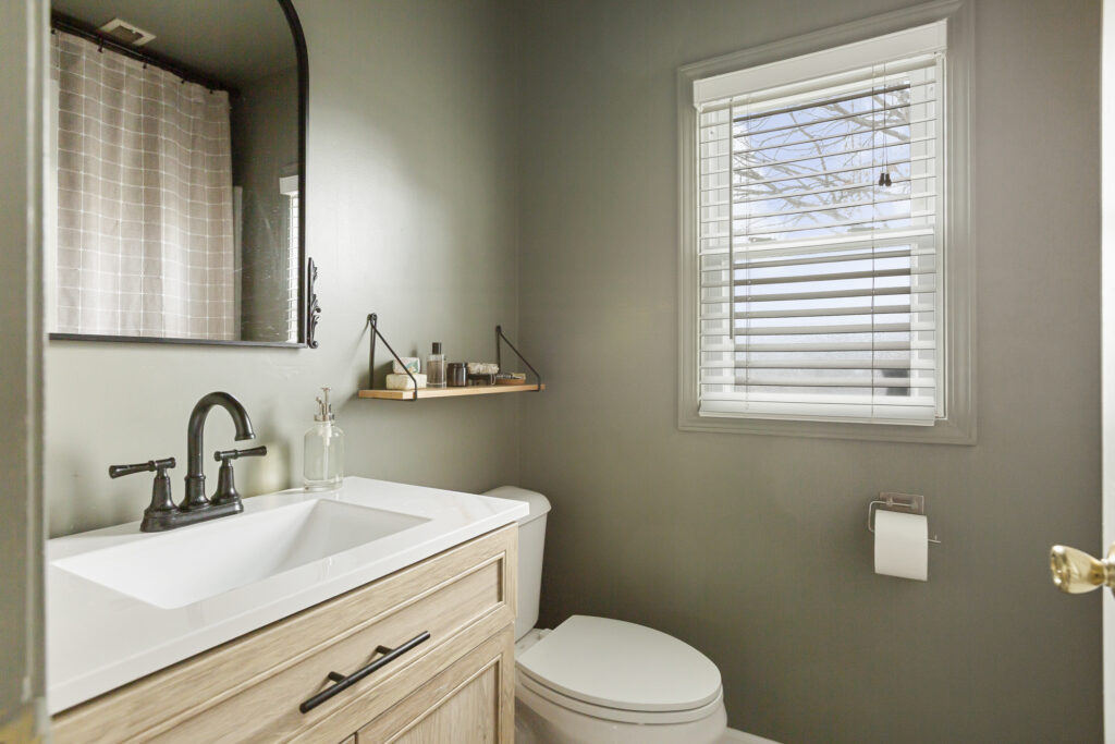 The primary suite is tucked away at the end of the home, and- in addition to being extremely large for the size of this home- has a layout conducive to a homeowner who feels as if their sleeping space is their sanctuary. The bedroom itself is large enough for furniture of almost any size, and contains a door to the front yard. An en suite bathroom here has been recently renovated into a moody green hue, and the walk-in closet provides ample storage. The showstopper here, though, is a secondary sitting area within the primary suite, perfect for a home office, dressing area, or secondary seating.